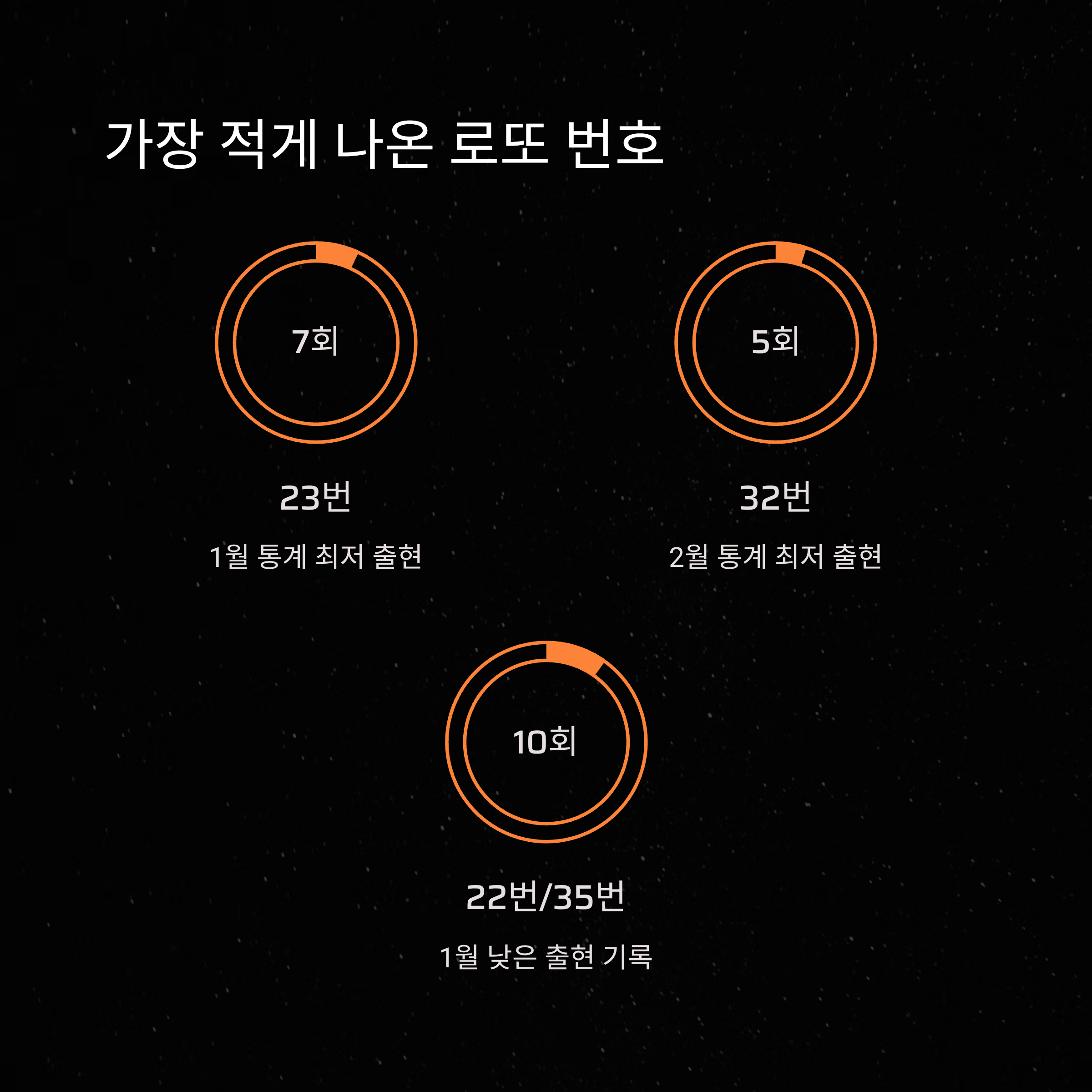 반대로 23번은 단 7회만 등장하며 1월 최저 출현번호로 기록되었습니다. 이런 수치는 계절성과 주기성이 동시에 작용한다는 근거가 됩니다.