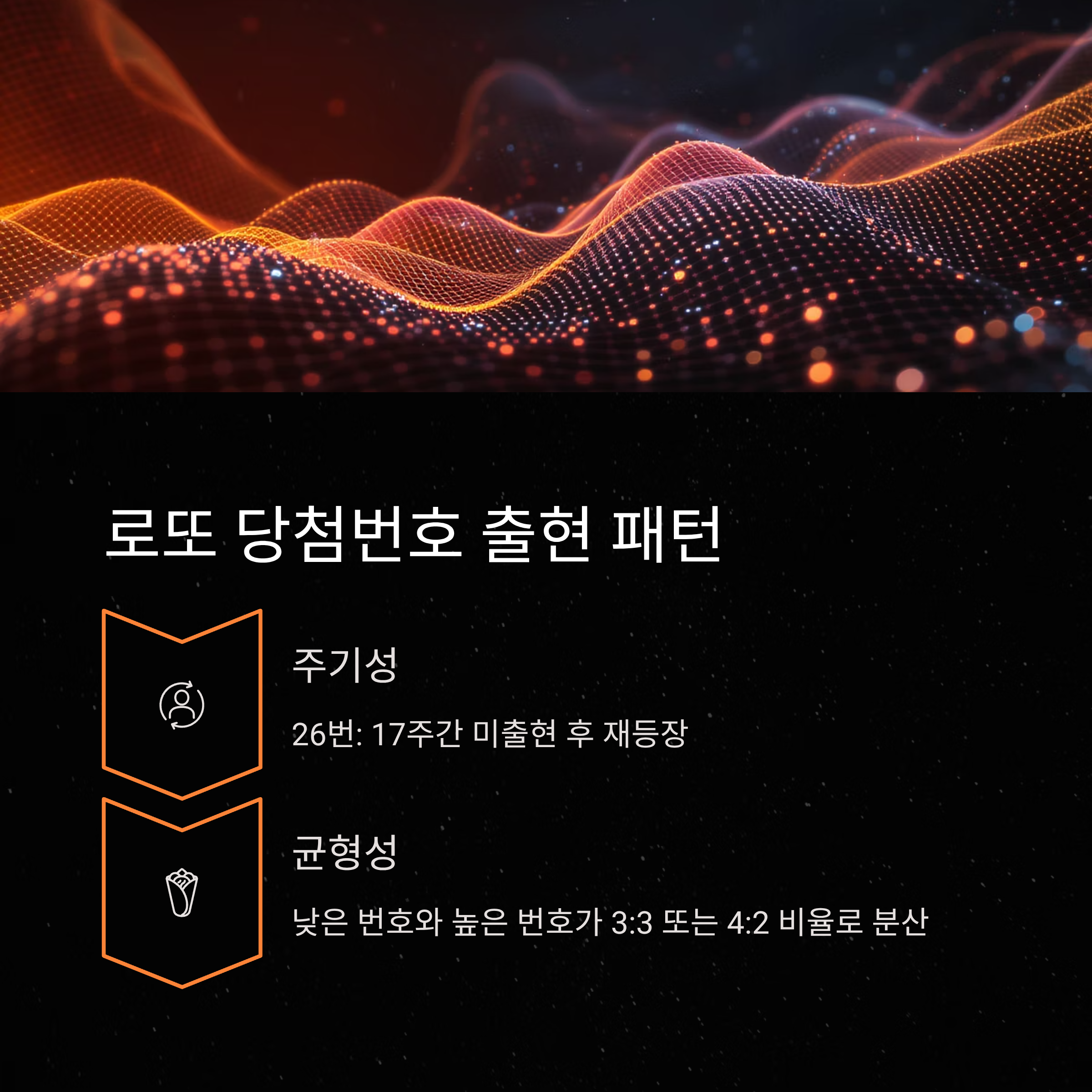 1187회 당첨번호 중 26번은 17주간 미출현 후 다시 등장했고, 37번은 단 2주 만에 재등장했습니다. 이런 흐름은 회귀설 분석에서 설명되는 ‘3회귀, 6회귀 패턴’과 맞닿아 있습니다.