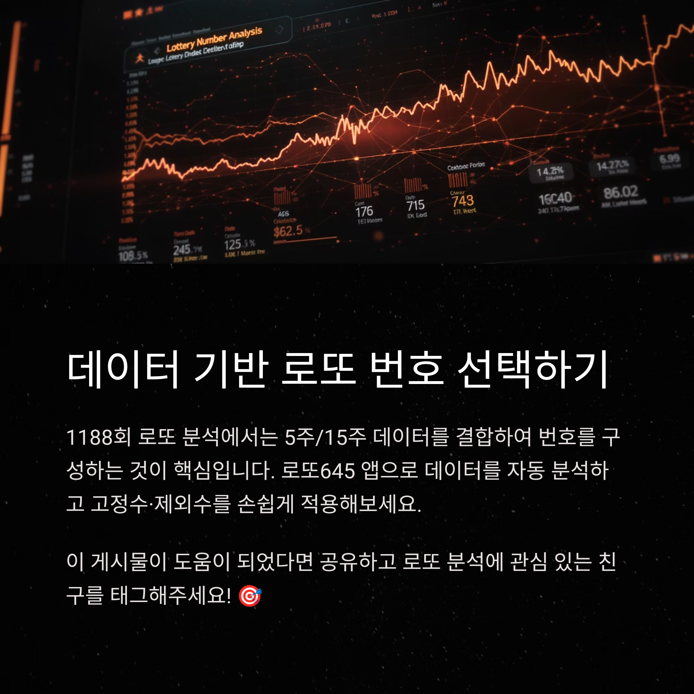결론적으로, 이번 1188회차 예상번호는 데이터 기반 조합과 앱 활용 조합을 병행할 때 가장 합리적입니다.