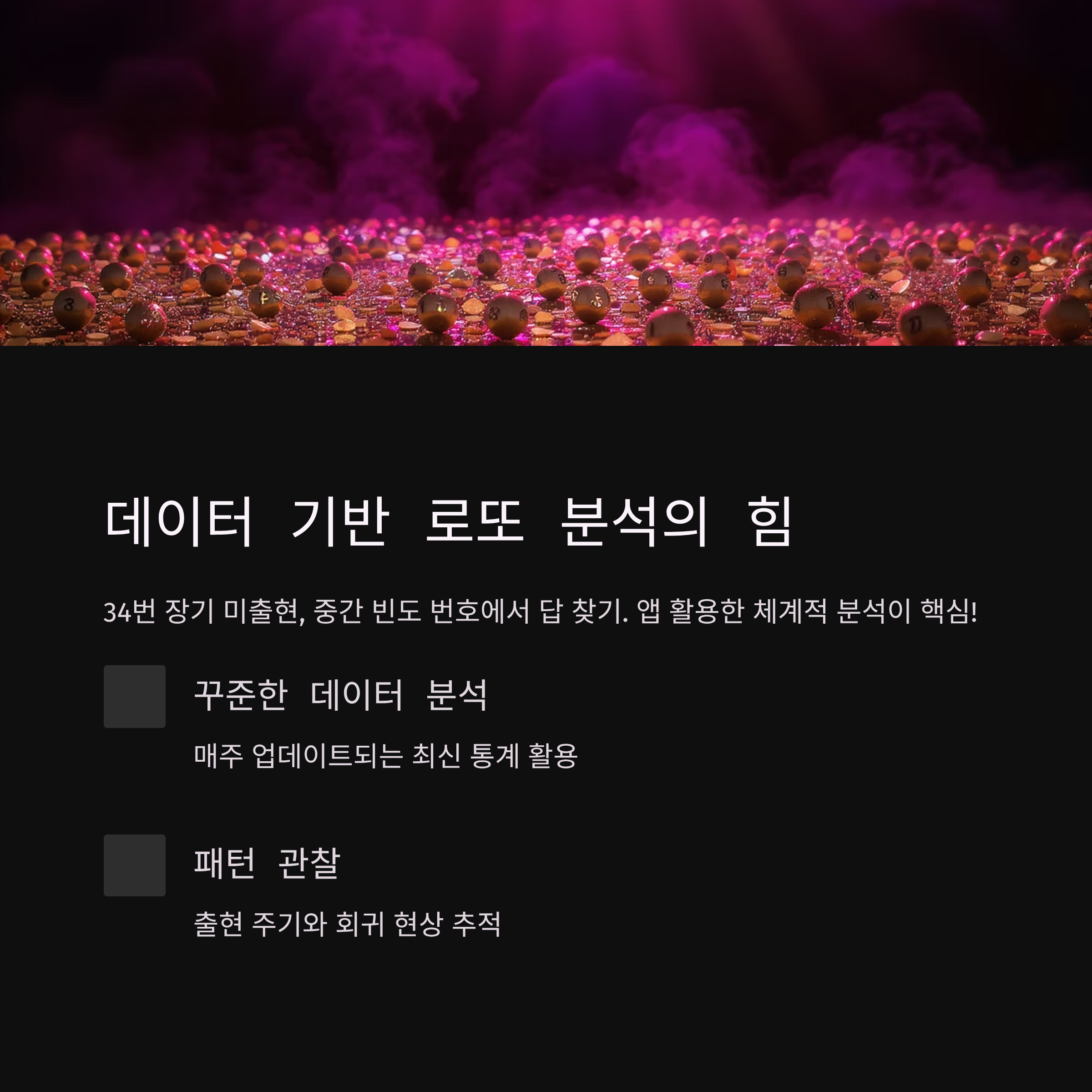 매주 토요일 추첨 후 즉시 업데이트되는 최신 데이터를 바탕으로, 회차별 번호, 출현번호 통계, 미출현번호 통계 등을 종합적으로 분석하면 더욱 정확한 예상이 가능합니다. 무엇보다 회원가입 없이 무료로 사용할 수 있어 누구나 쉽게 접근할 수 있다는 점이 큰 장점입니다.