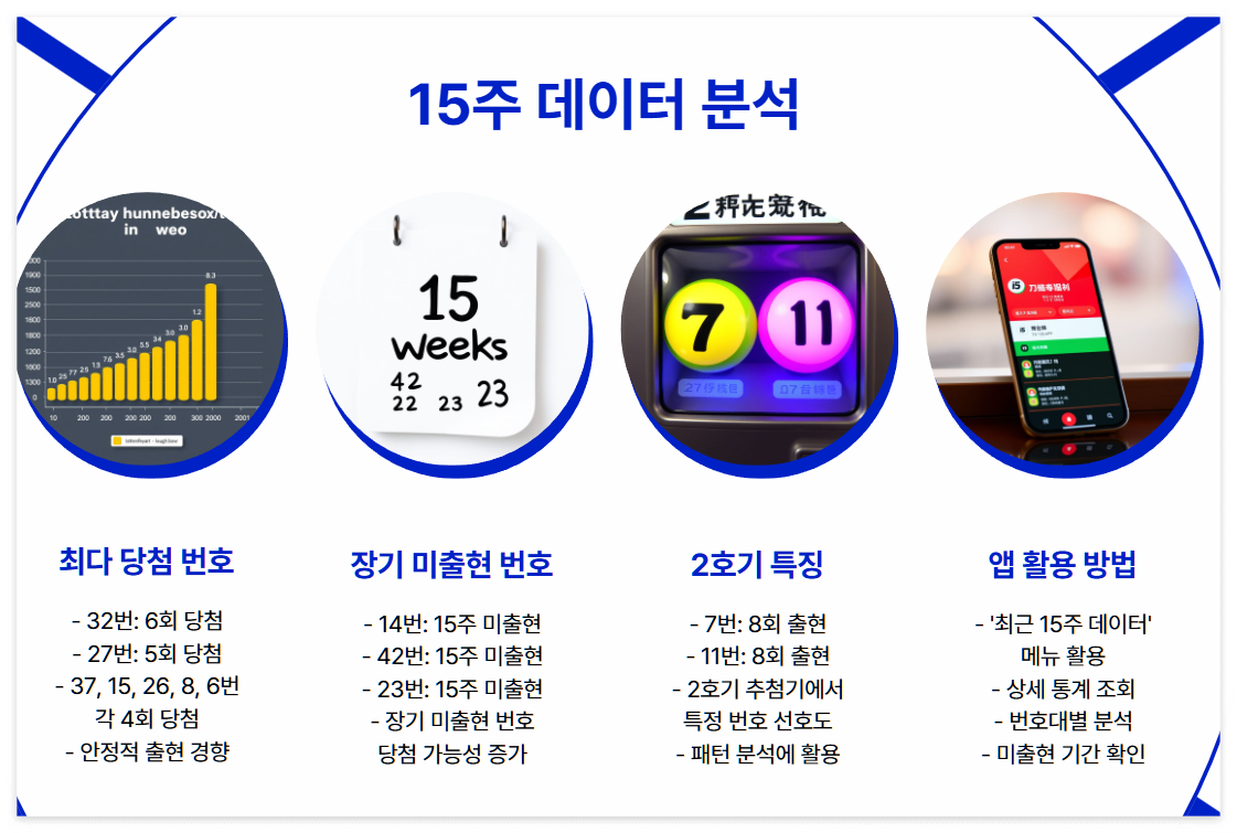 앱 내 “최근 15주 데이터” 메뉴를 활용하면 상세한 통계 자료를 손쉽게 조회할 수 있으며, 이를 바탕으로 보다 정교한 예상번호 조합이 가능합니다.