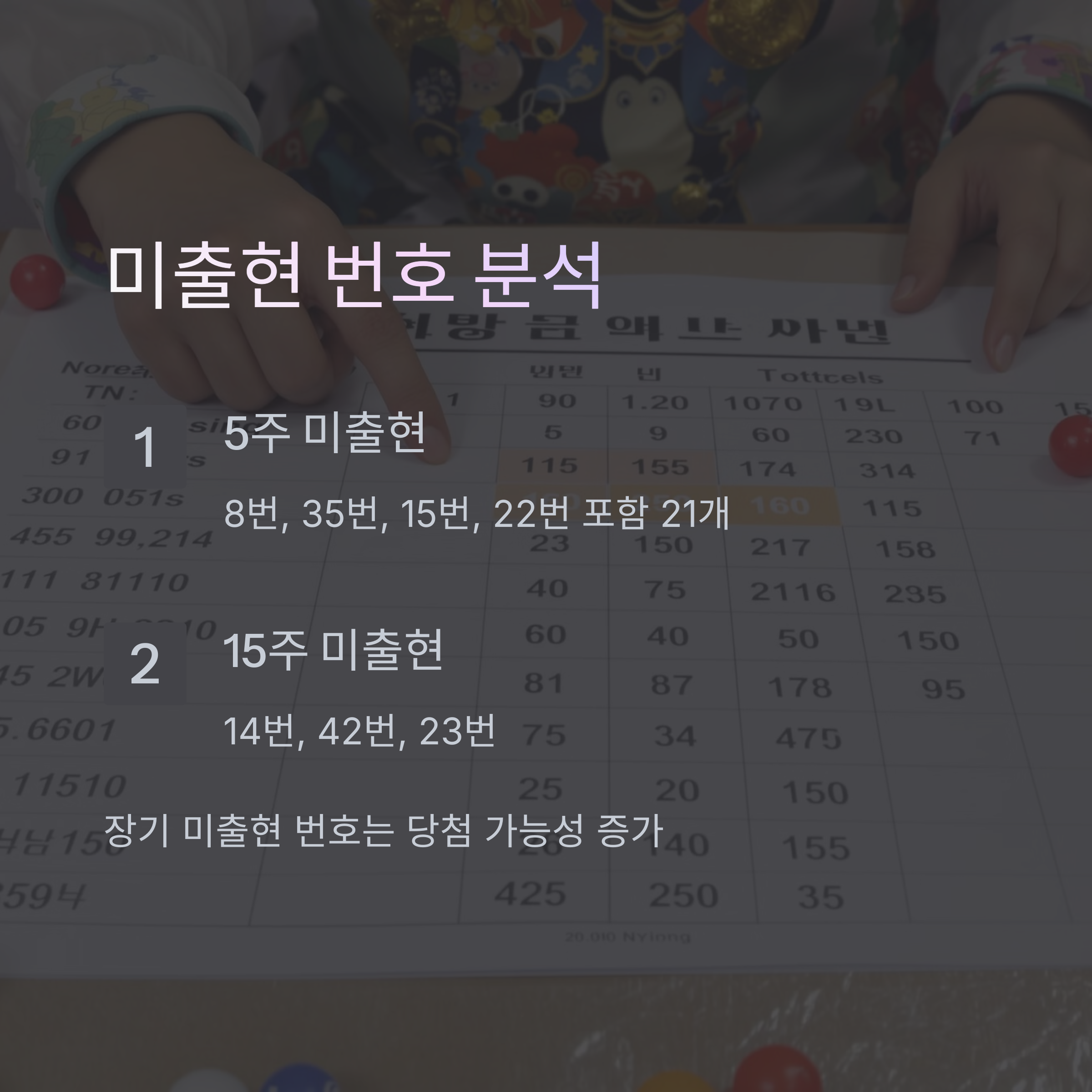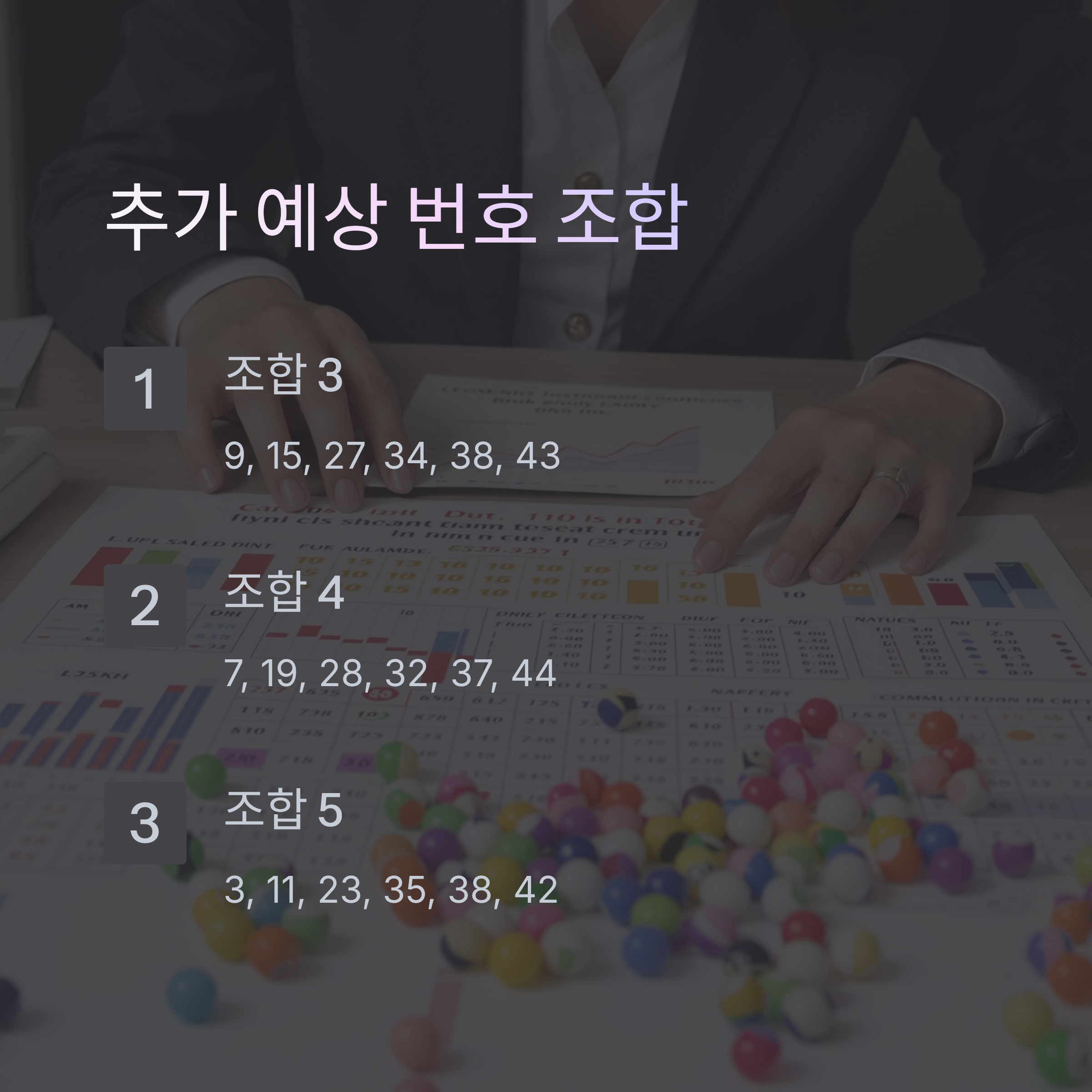 - 5조합: 3, 11, 23, 35, 38, 42 (장기 미출현 + 최근 출현)