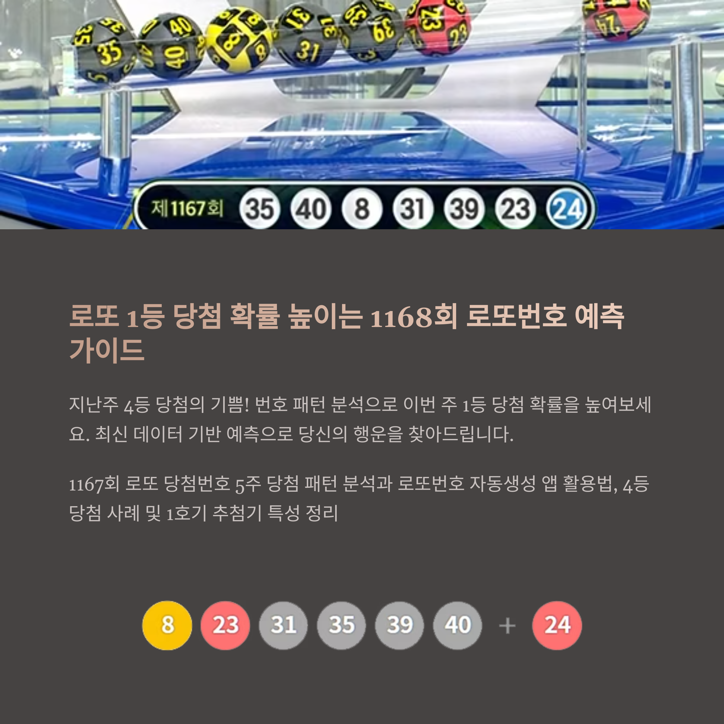 1167회 로또 당첨번호는 8, 23, 31, 35, 39, 40 (보너스: 24)이었습니다. 이 번호들을 자세히 분석해보니 몇 가지 흥미로운 패턴이 발견됩니다.