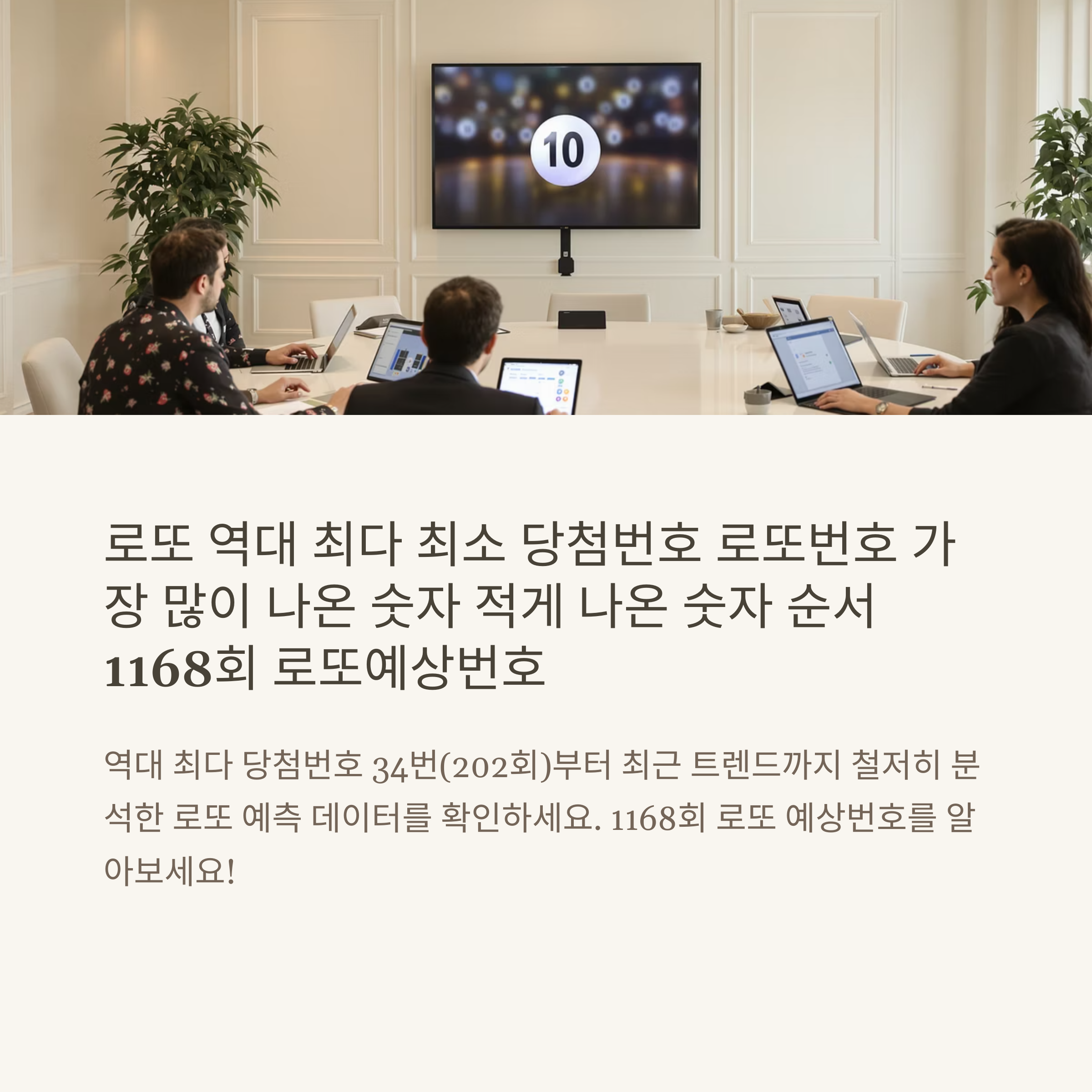 1168회 로또 역대 최다 당첨번호, 가장 많이 나온 숫자, 적게 나온 숫자 순서를 분석하여 1168회 로또예상번호를 알아보겠습니다. 2025년 4월 19일에 진행될 1168회 로또 추첨을 앞두고 역대 당첨번호 데이터를 분석하면 통계적 패턴을 발견할 수 있습니다.