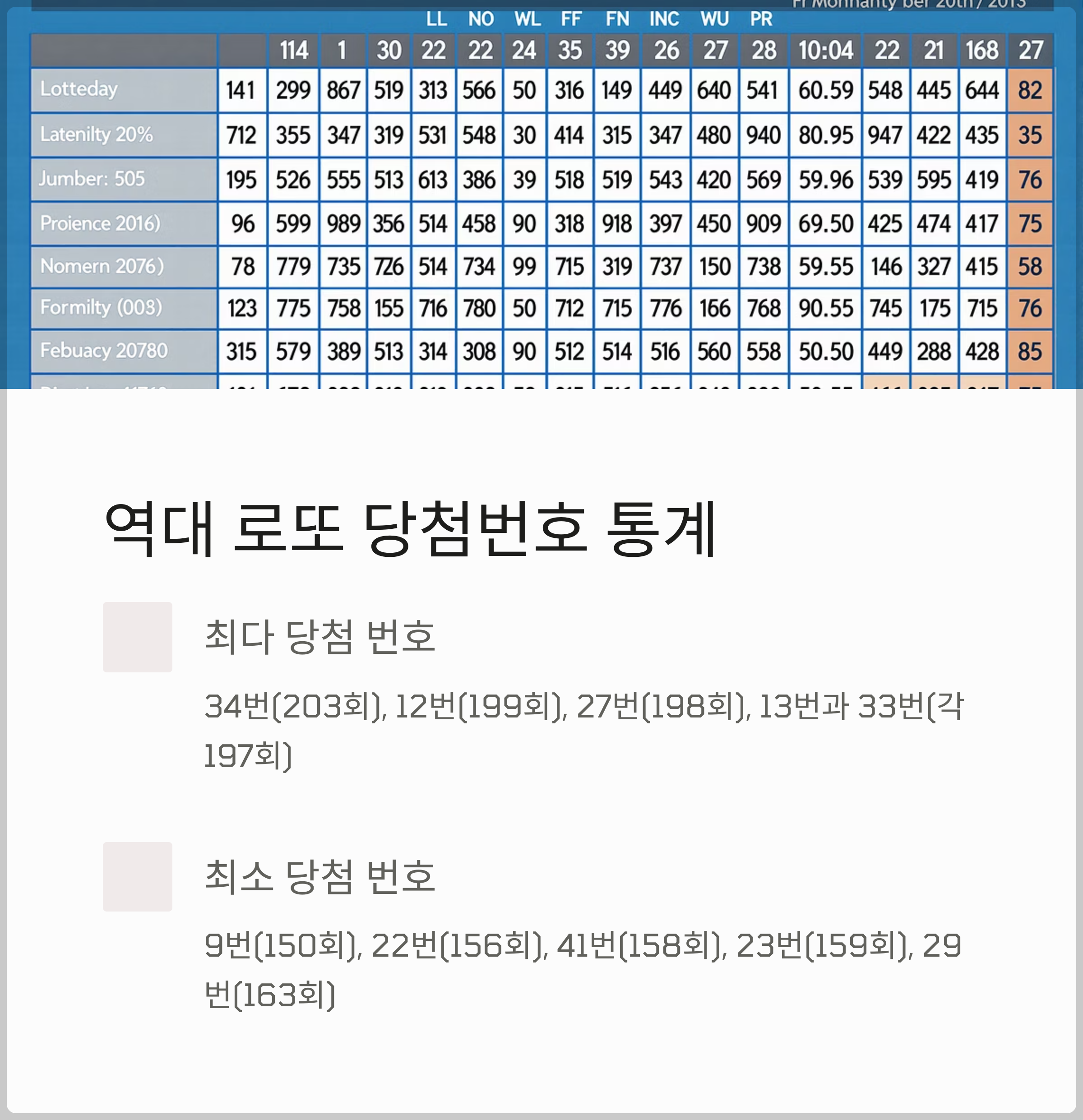 1. 로또 역대 최다 최소 당첨번호