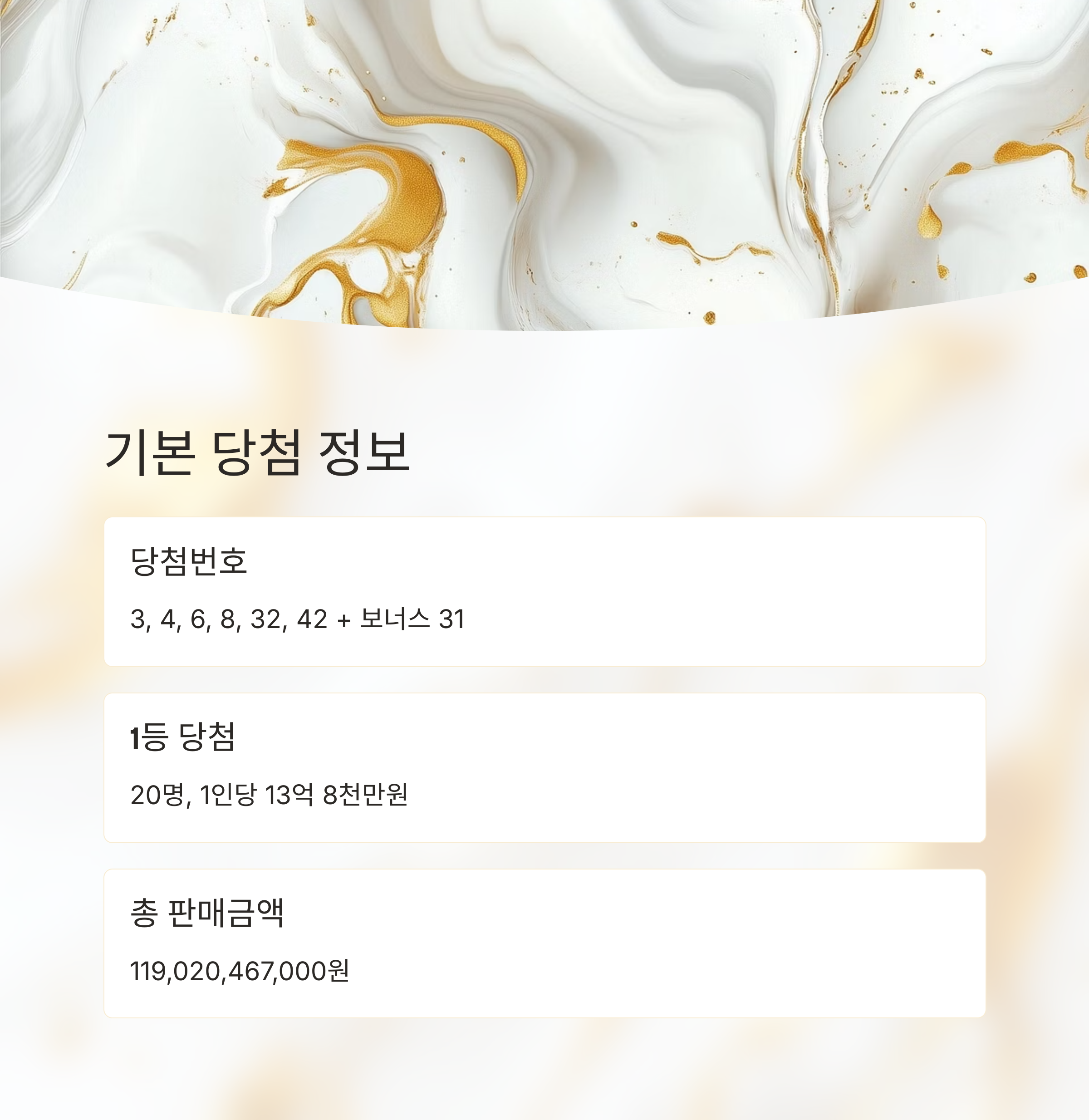 당첨번호: 3, 4, 6, 8, 32, 42 + 보너스 31