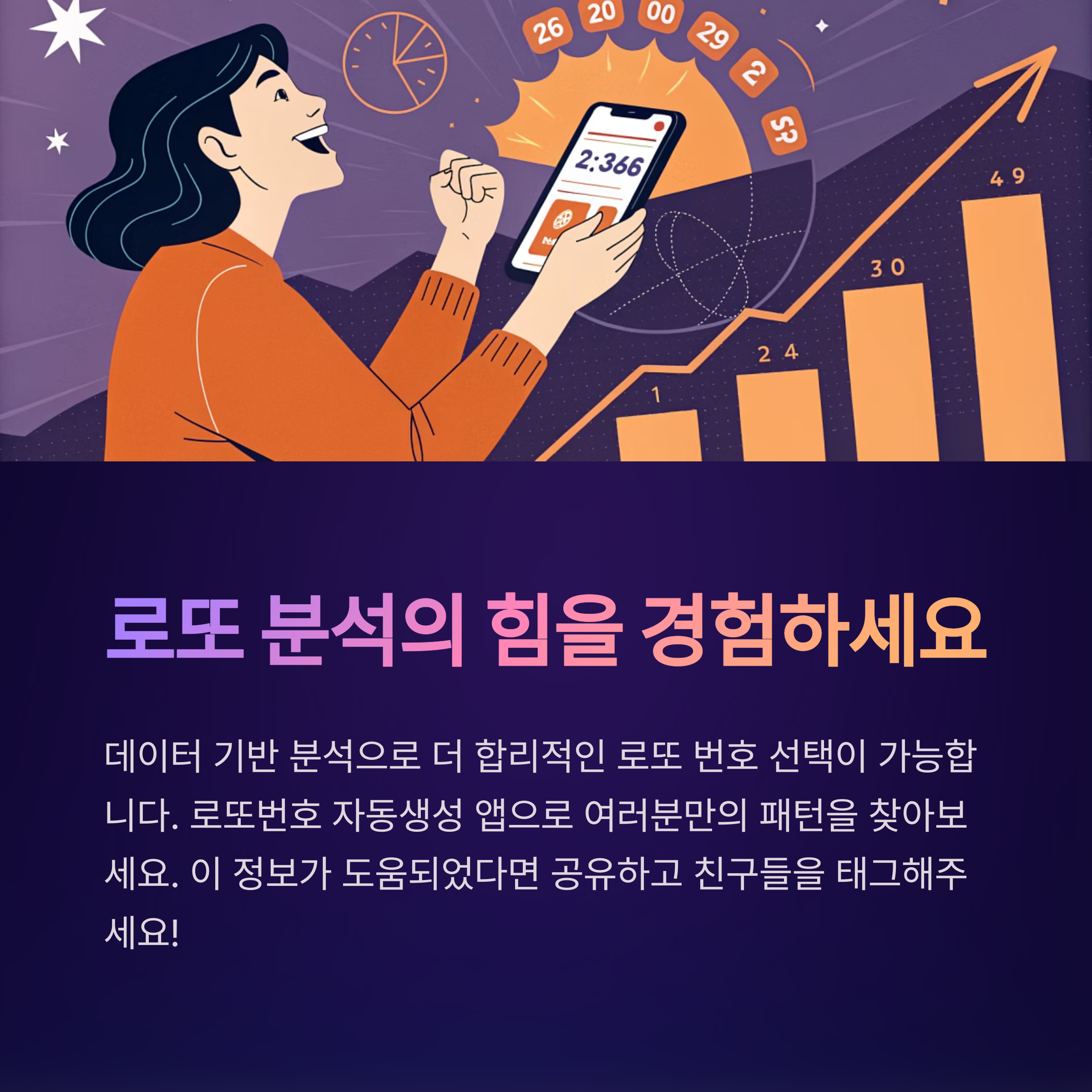 하지만 개인적으로는 로또번호 자동생성 앱의 '자동 조합 생성' 기능을 직접 사용하는 것을 권장합니다. 앱은 더 많은 변수와 최신 데이터를 종합적으로 분석하여 개인에게 맞춤형 번호를 제공하기 때문입니다.